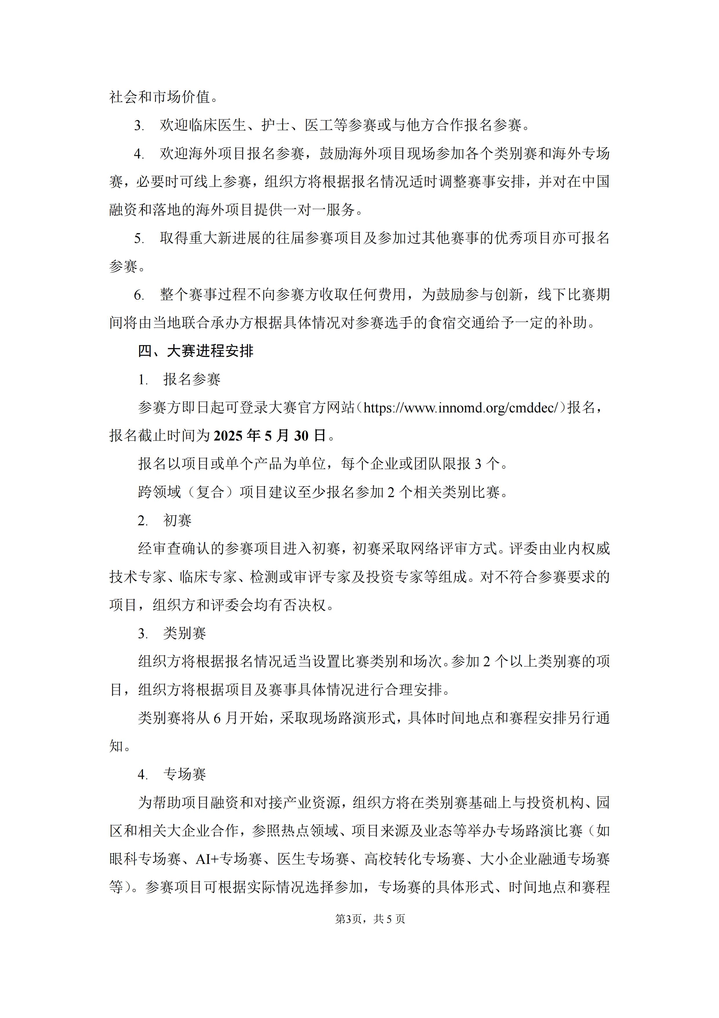 参赛方即日起可登录大赛官方网站(医疗器械创新网网://lnhuanxin.com/cmddec/)报名,报名截止时间为2025年5月30日。