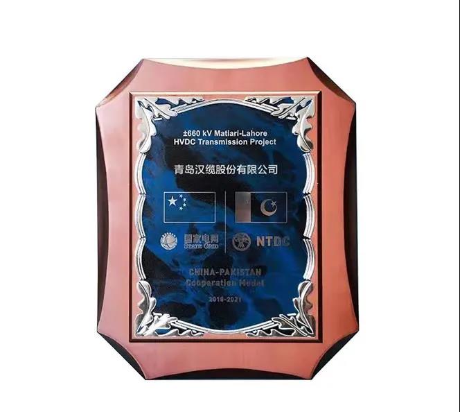 近日,汉缆股份收到中国电力技术装备有限公司发来的感谢信、奖牌、纪念章,对汉缆股份在巴基斯坦默蒂亚里-拉合尔±660kV直流输电项目做出的贡献表示感谢。并对汉缆股份供货能力、产品质量、技术工艺给予高度认可。